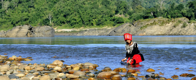 | ကခ်င္ျပည္နယ္ ျမစ္ႀကီးနားၿမိဳ႕အနီး ဧရာ၀တီျမစ္ေပၚမွာေတြ႕ရသည့္ ကခ်င္တုိင္းရင္းသူတဦး (Photo : The Irrawaddy) |