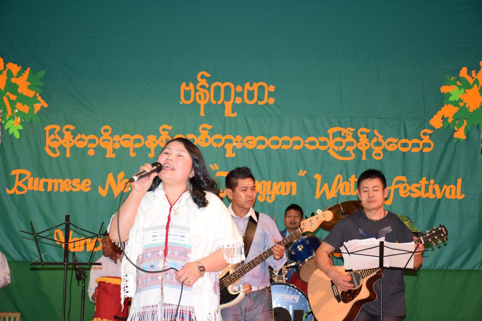 သည့္ေနာက္မွာ တဦးခ်င္းနဲ ့ အုပ္စုသီဆိုေျဖေဖ်ာ္မႈမ်ား ျပဳလုပ္ၾကပါတယ္။ ခ်င္းတိုငး္ရင္းသူ ညီမေလးမ်ားျဖစ္ၾကတဲ့ မအက္ဆာ၊ မနီလာတို ့အတြဲမွ (သႀကၤန္မိုး)၊ ကရင္တိုင္းရင္းသူ ေနာ္ေအးျမသန္းက ကရင္ဘာသာျဖင့္(ခ်မ္းပါတယ္၊ ဘသုသာခြီး=ေပ်ာ္ေစခ်င္ တယ္) သီခ်င္းမ်ားနဲ ့ျမဴးျမဴးၾကြၾကြ တင္ဆက္သြားၾကပါတယ္။ တိုင္းရင္းသားညီအစ္ကိုေမာင္ႏွမမ်ားလည္း ျမန္မာ့ရုိးရာသႀကၤန္ပြဲကို