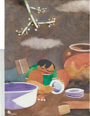 စားပြဲထိုးမေလးေတြ အရြယ္စုံ ဥဒဟို သြားလာေနၾကသည္။ ဖြင့္ထားေသာ သီခ်င္းသံျမဴးႂကြႂကြႏွင့္ အလိုက္သင့္ လူပ္ရွားေနၾကသည္။ စားပြဲထိုးမေလးကို မွာထားတုန္း စားပြဲထိုးကေလးေလး ေရာက္လာၿပီး ေရေႏြးခြက္ခ်ေပးရင္း ဘာ မွာမလဲ ေမးသည္။ စားရင္း ေသာက္ရင္း စကားေျပာရင္း မလွမ္းမကမ္းမွာ ရပ္ေနေသာ ယင္းကေလးကို ေခၚၿပီး ေမးၾကည့္ရေအာင္ဆိုကာ ကေလးငယ္ကို ေခၚလိုက္သည္။