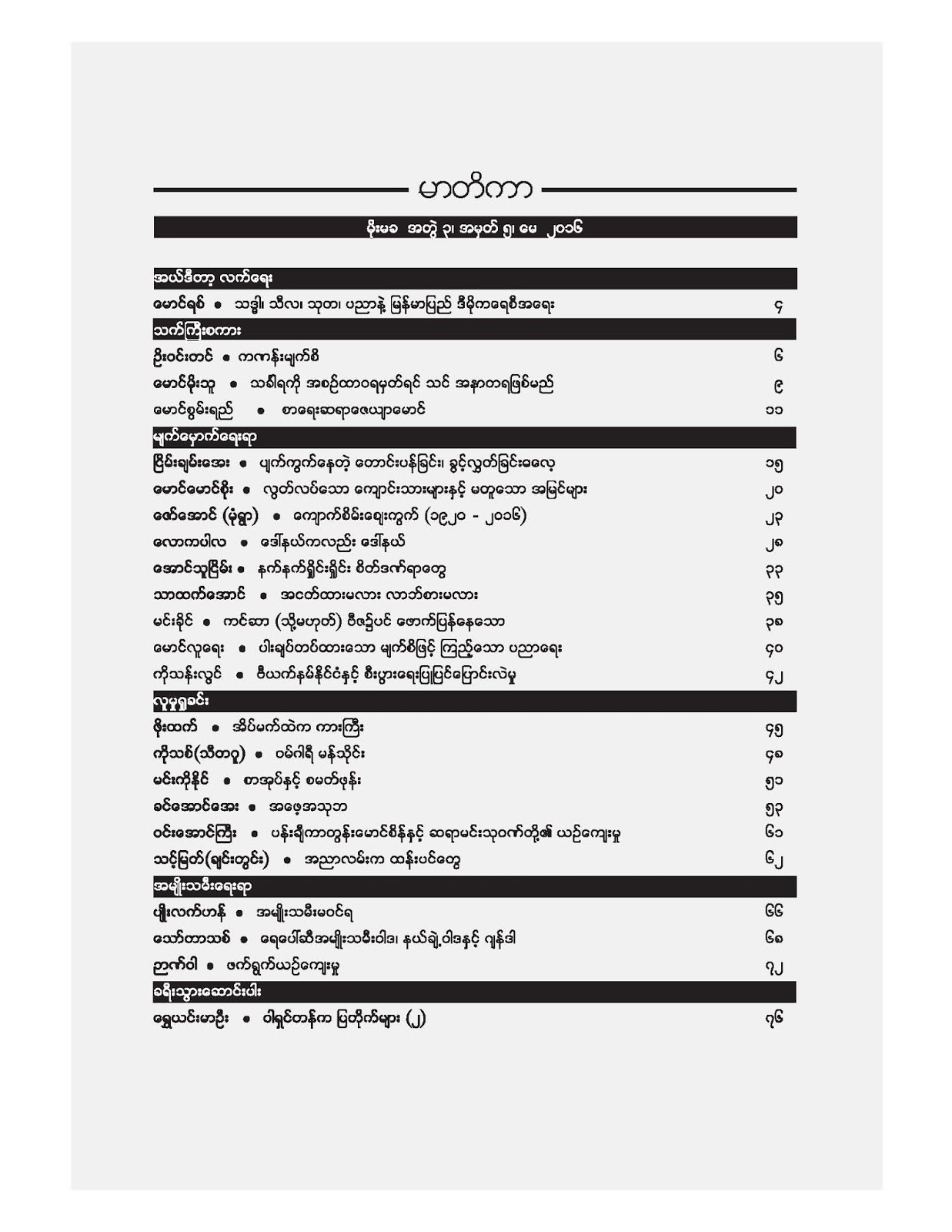 မိုးမခ မဂၢဇင္း ေမလထုတ္ စာအုပ္ဆိုင္ေတြေပၚ ေရာက္ေနပါၿပီ