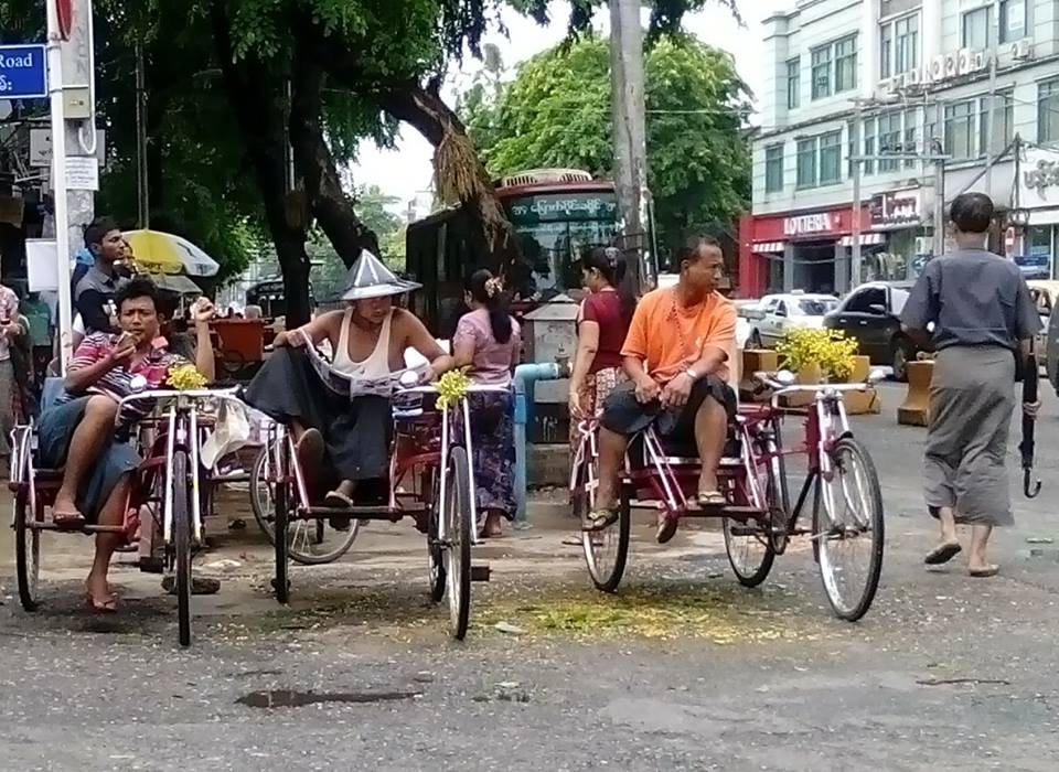ယေန႔ ရန္ကုန္ၿမိဳ႕လယ္တြင္ ေတြ႔ရေသာ ဆိုက္ကားတခ်ဳိ႕ (ဓာတ္ပံု – ညြန္႔ေထြး)