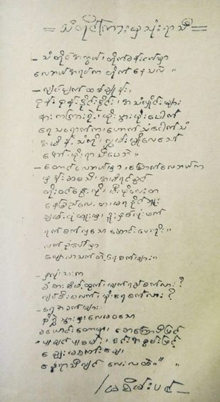 (ဆရာမ မစိမ္းပင္၏ကဗ်ာတပုဒ္ကိုု မူရင္းသတ္ပုံအတိုင္း ေဖာ္ျပပါသည္။)