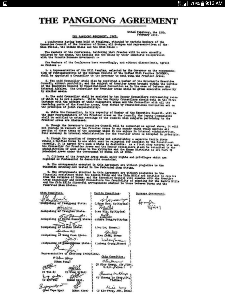 ထိုေၾကာင့္လည္း ၁၉၄၇ ခုႏွစ္တြင္ ျပည္မႏွင့္ ခ်င္းေတာင္တန္း ကခ်င္ေတာင္တန္း ရွမ္းျပည္နယ္မွ ေခါင္းေဆာင္မ်ား တက္ေရာက္ၾကေသာ ပင္လုံအစည္းအေဝး၌ ၾကားျဖတ္ျမန္မာအစုိးရႏွင့္ ခ်က္ခ်င္း ပူးေပါင္းလိုက္ျခင္းျဖင့္ ရွမ္း ကခ်င္ ခ်င္း တို႔သည္ ျပည္မႏွင့္အတူ လြတ္လပ္ေရးကို လ်င္ျမန္စြာ ရရွိလိမ့္ မည္ဟုယူဆကာ ပင္လုံစာခ်ဳပ္ကို တညီတညြတ္ထဲသေဘာတူခ့ဲၾကသည္ဟု ဆိုရပါမည္။