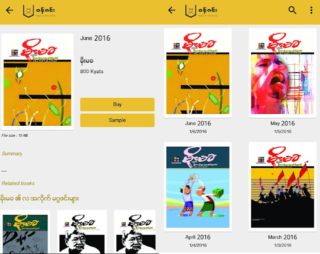 မိုးမခ မဂၢဇင္း အတြဲ (၃)၊ အမွတ္ (၆) ဇြန္လထုတ္အသစ္ E-book ကို Wun Zinn Mobile App ကတဆင့္ ၈၀၀ က်ပ္ျဖင့္ ဝယ္ယူရရွိႏိုင္ပါသည္။