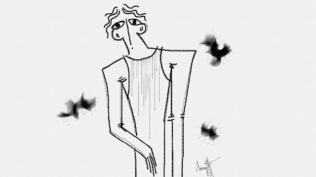 “မဟုတ္ပါဘူးကြာ ” ဆိုၿပီး မိန္းမနဲ႔ ဆက္ေလွ်ာက္လာခဲ့ရတယ္။ ဒါေပမယ့္ ဒီလူ႔ပုံက မ်က္လံုးထဲက မထြက္ဘူး။ ေစာင္းတန္း ေလွကားရွည္ႀကီးအတိုင္းဆင္းလို႔ ေအာက္ေျခလမ္းေပၚသာ ေရာက္လာခဲ့တယ္။ ဒီလူက မ်က္လံုးထဲ ေနရာယူထားတုန္း။ အိမ္ေရာက္ ေတာ့လည္း တဝဲဝဲ ျမင္ေနေသးတာ။ ကုန္ကုန္ေျပာရရင္ အခုထိကို ျပန္ျပန္ျမင္ေနေသးတာ။