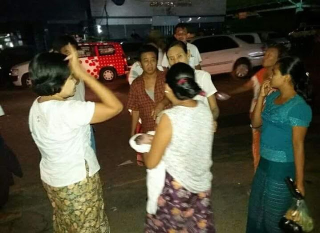 | ေမလ ၁၂ ရက္ေန႔က ရန္ကုန္၊ မဂၤလာေတာင္ညြန္႔ၿမိဳ႕နယ္၊ ကန္ေတာ္ေလးေတာင္ပိုင္းရပ္ ေနာက္ေဖးလမ္းၾကားတခုမွ ရရိွေသာ ကေလးႏွင့္ အတူ ေတြ႔ရသည့္ ေဒသခံမ်ား |