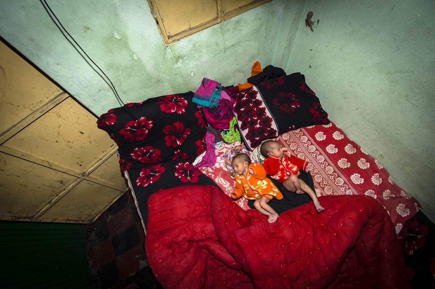 | ကန္ဒါပါရာ (Kandapara) ျပည့္တန္ဆာအိမ္ရွိ အိပ္ယာေပၚက လိင္အလုပ္သမတေယာက္၏ အမႊာကေလးငယ္မ်ား |