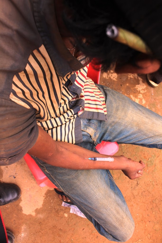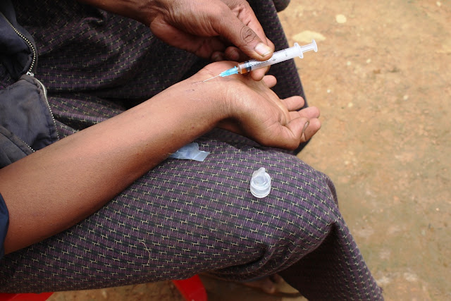 ဖားကန္႔ေဒသမွာ ဘိန္းျဖဴကုိ အေၾကာထဲထုိးသြင္းသူေတြ စတည္းခ်ၾကတဲ့ေနရာ အမ်ားအျပား ရိွပါတယ္။ ဒီလုိမ်ဳိးေနရာမွာ အျပန္အလွန္ ေဆးထုိးေပးသူေတြကုိလည္း ေတြ႔ရပါတယ္။ စုိးရိမ္စရာအခ်က္တစ္ခုကေတာ့ ေဆးထိုးအပ္တစ္ခုထဲကုိ လူတစ္ေယာက္ထက္ ပိုသံုးမယ္ဆုိရင္ ခုခံက်ေရာဂါပိုး (HIV) ကူးစက္ႏိုင္ျခင္းပါပဲ။ က်န္းမာေရးဆုိင္ရာ အကူအညီေပးေရး အဖဲြ႔အစည္းတခ်ဳိ႕ကေတာ့ ဒီေဒသမွာ တစ္ခါသံုးေဆးထိုးအပ္ေတြ အခမဲ့ ျဖန္႔ေဝျခင္း၊ HIV ပိုး စစ္ေဆးျခင္း၊ HIV ပိုး ကူး စက္ခံထားရသူကုိ ႏွစ္သိမ့္ေဆြးေႏြးအားေပးျခင္း စတဲ့ လုပ္ငန္းေတြ လုပ္ကုိင္ေနၾကပါတယ္။