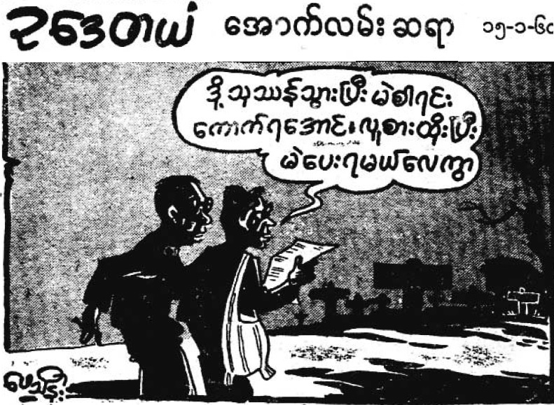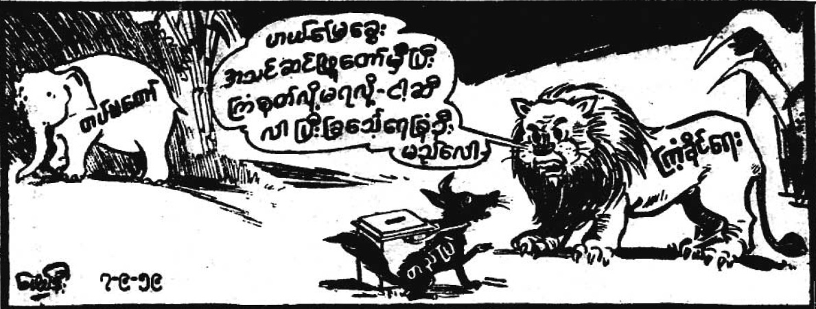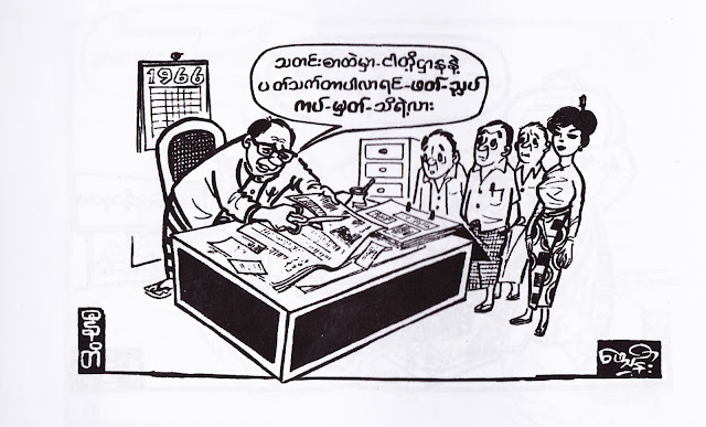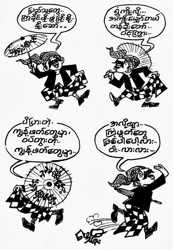 ကာတြန္းမ်ား – စီးပြားျဖစ္ အသံုးခ်ျခင္း မျပဳပါရန္။ မူပိုင္ခြင့္မွာ ဆရာႀကီးရဲ႕ က်န္ရစ္သူ မိသားစုထံတြင္ ရွိပါသည္။