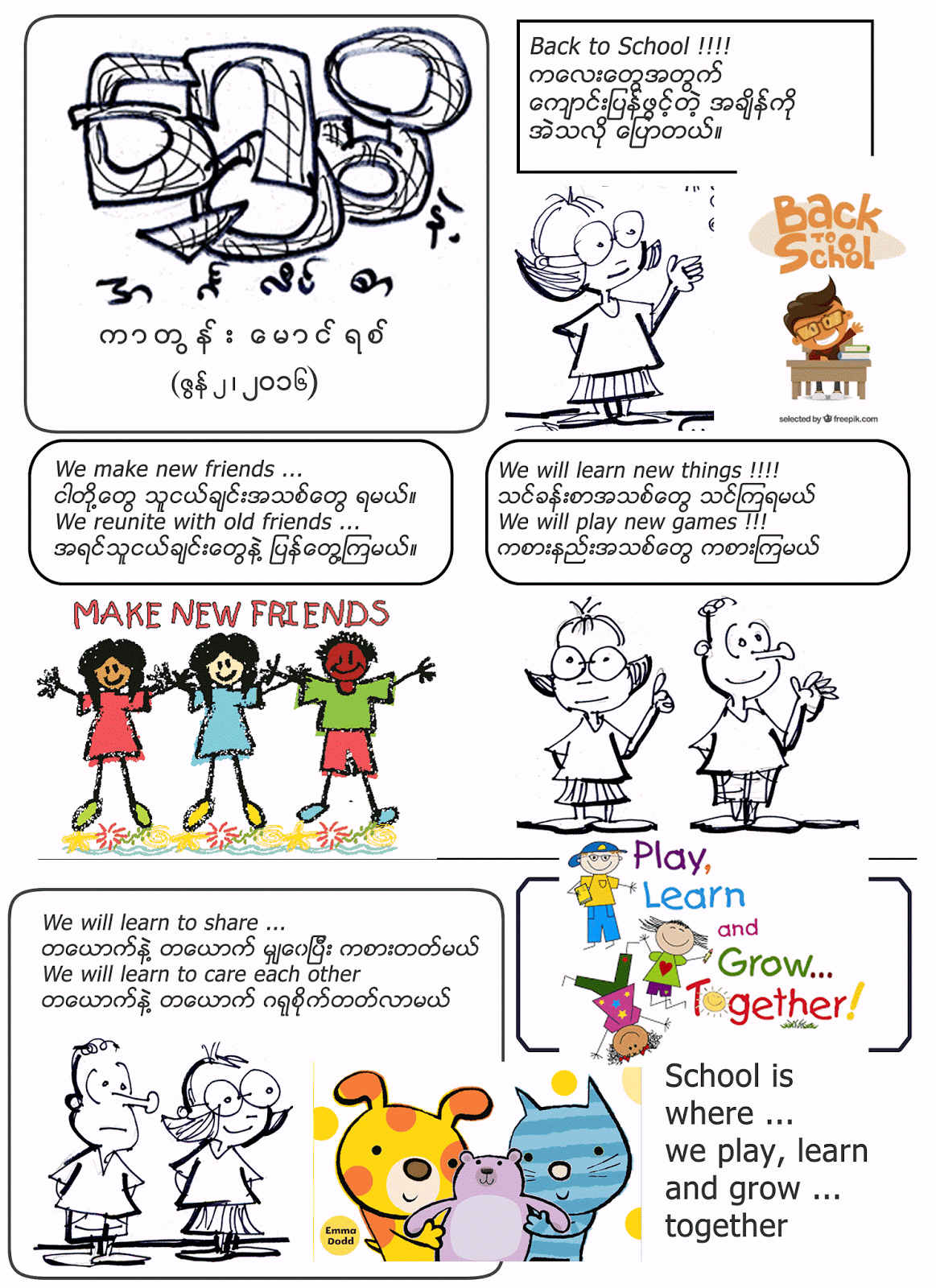 ကာတြန္း ေမာင္ရစ္ – ေရႊမ္ိနဲ႔ အဂၤလိပ္စာ – Back to School