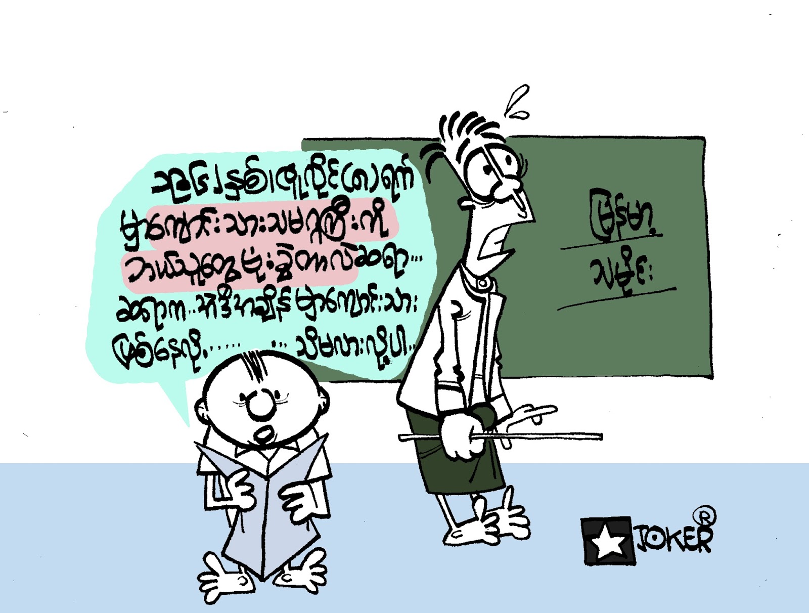 1962 ဗံုးခြဲေတာ့ လြန္ခဲ့တဲ့ ၅၄ႏွစ္ကပါ။ ကာတြန္းထဲက အသက္၄၀အရြယ္ဆရာရဲ့ အေျဖကေတာ့
