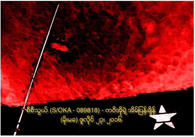 တိုုင္းျပည္အက်ဳိးေမွ်ာ္ကိုုး၍ က်မ စီစီသြယ္ (S/OKA 089818) မွာ ျဖစ္ရပ္မွန္ စာတဖြဲ႕၊ “က၀ိအုုိ၏ အိမ္ျပန္ခ်ိန္” ကိုု ေလးစားစြာ တင္ျပအပ္ပါသည္။