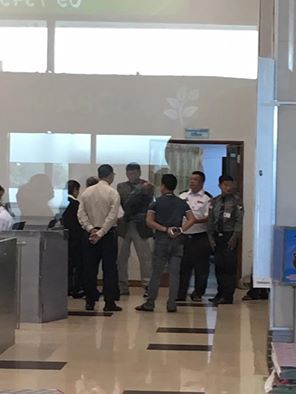 မေန႔က ရန္ကုန္ေလဆိပ္မွာ အတားခံထားရတဲ့ ကိုေမာင္ေမာင္၀မ္း၊ Photo Htein Lin |