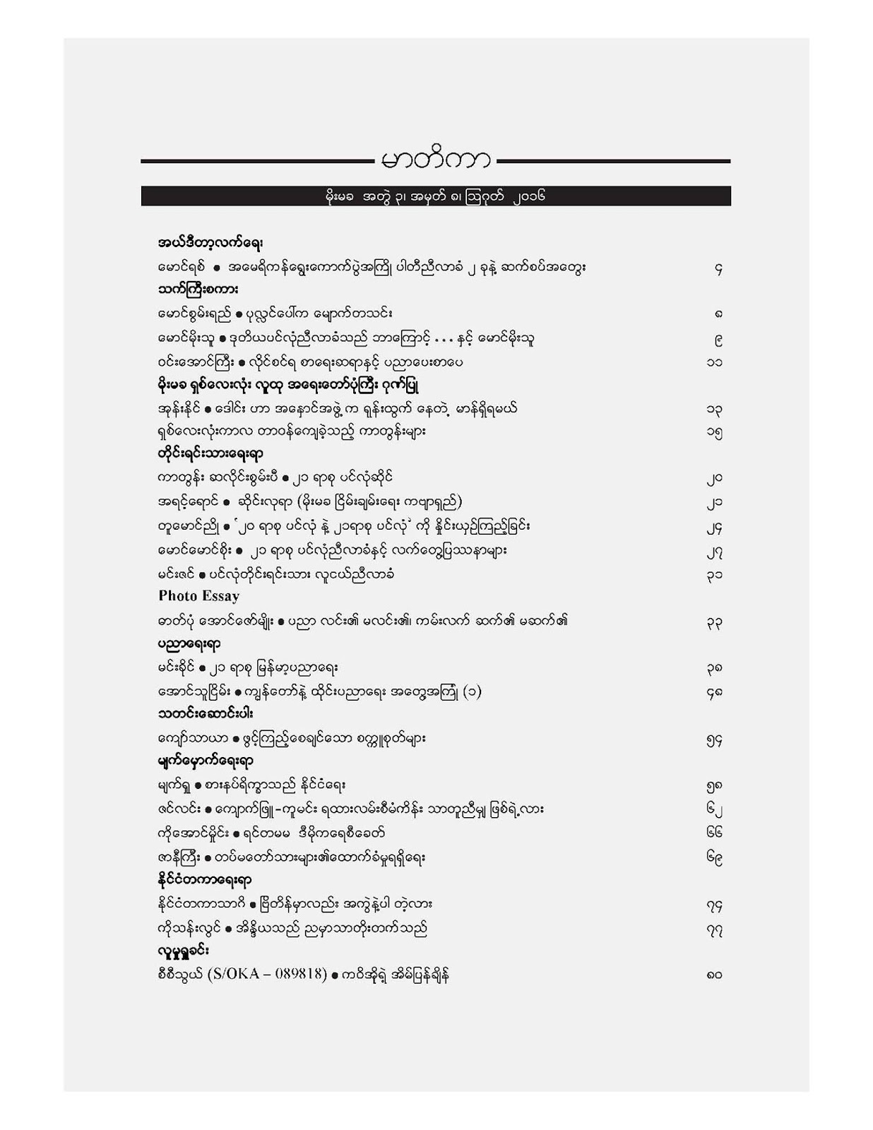 မိုးမခ မဂၢဇင္း ၾသဂုတ္လထုတ္ ထြက္ၿပီ