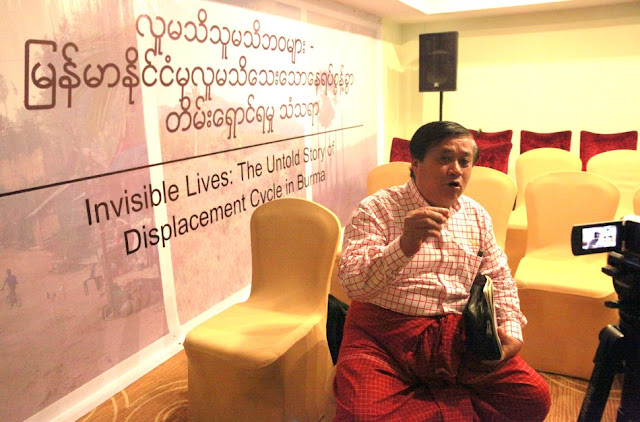 ရန္ကုန္ၿမဳိ႕တြင္ ေသာၾကာေန႔က ျပဳလုပ္သည့္ “လူမသိသူမသိဘဝမ်ား – ျမန္မာႏိုင္ငံမွ လူမသိေသးေသာ ေနရပ္စြန္႔ခြာ တိမ္းေရွာင္ရမႈသံသရာ”  အစီရင္ခံစာအေၾကာင္း  သတင္းစာရွင္းလင္းပဲြတြင္ ေတြ႔ရသည့္ ၈၈ မ်ဳိးဆက္ ႏိုင္ငံေရးသမားတစ္ဦးျဖစ္သည့္ ဦးမင္းေဇယ် (ဓာတ္ပံုမ်ား – Myanmar Now)