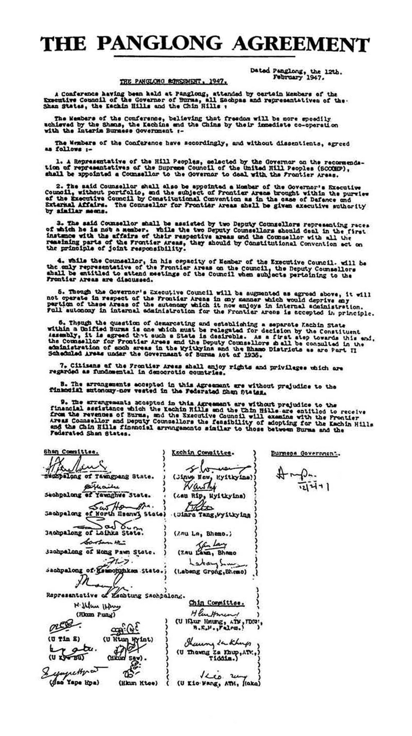 ၿပီးေတာ့ ပင္လံုညီလာခံမွာ ဗုိလ္ခ်ဳပ္နဲ႔က်ေနာ္တုိ႔ တုိင္းရင္းသားလူမ်ိဳးစုကုိယ္စားလွယ္မ်ားသေဘာတူ နားလည္မႈရရွိခဲ့တာ ရွိပါေသးတယ္။ ပင္လံုခ်ုဳပ္မွာ မေဖာ္ျပထားေပမယ့္ (Gentleman’s Agreement) လုိ႔ ေခၚရ မွာလား က်ေနာ္မေျပာတက္ဘူး။ က်ေနာ္တုိ႔ကေတာ့ အဲဒါကို ပင္လံုစိတ္ဓါတ္လို႔ သက္မွတ္ထားပါတယ္။ အဲဒီ သေဘာတူနားလည္မႈေတြက –