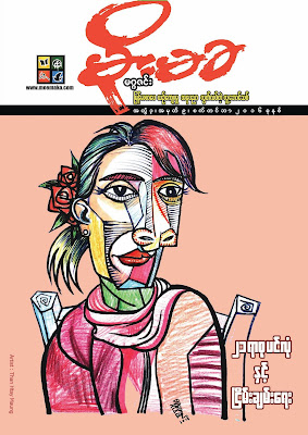 ေဒၚေအာင္ဆန္းစုၾကည္ ပံု ပန္းခ်ီ – ဆရာ သန္းေဌးေမာင္ရဲ႕ လက္ရာကို မဂၢဇင္း မ်က္ႏွာဖံုးတင္ေတာ့ ဒီမိုကေရစီလိုလားသူမ်ားလို႔ ယူဆရတဲ့ (သို႔မဟုတ္) ေဒၚေအာင္ဆန္းစုၾကည္ကို ၾကည္ညိဳေလးစားခ်စ္ခင္သူမ်ား ေခါင္းစဥ္ေအာက္က လူတခ်ိဳ႕ မိုးမခ စာမ်က္ႏွာမွာ လာဆဲၾကတယ္။ မ်က္ႏွာဖံုးကို ကန္႔ကြယ္တယ္ ဆိုၾကတယ္။ က်ေနာ္ သူတို႔ကို အျပစ္မတင္ပါဘူး။ ရယ္သြမ္းလည္း မေသြးရက္ပါဘူး။ ဝမ္းနည္းစိတ္ပဲ ျဖစ္မိပါတယ္။