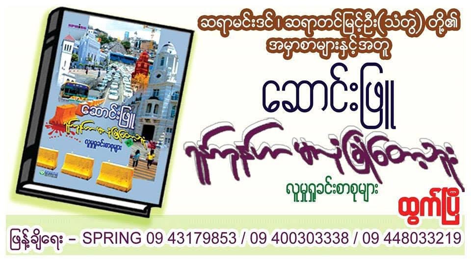 “ရန္ကုန္ဟာ မလုံၿခံဳေတာ့ဘူး” စာအုပ္ သစ္ကို Sprint ျဖန္႔ခ်ိေရးက ျဖန္႔ခ်ိၿပီး ဖုန္း ၀၉ ၄၃၁ ၇၉ ၈၅၃ ၊ ၀၉ ၄၀၀ ၃၀၃ ၃၃၈ ၊ ၀၉ ၄၄၈ ၀၃၃ ၂၁၉ ကို ဆက္သြယ္ မွာယူႏိုင္ေၾကာင္း သိရပါတယ္။