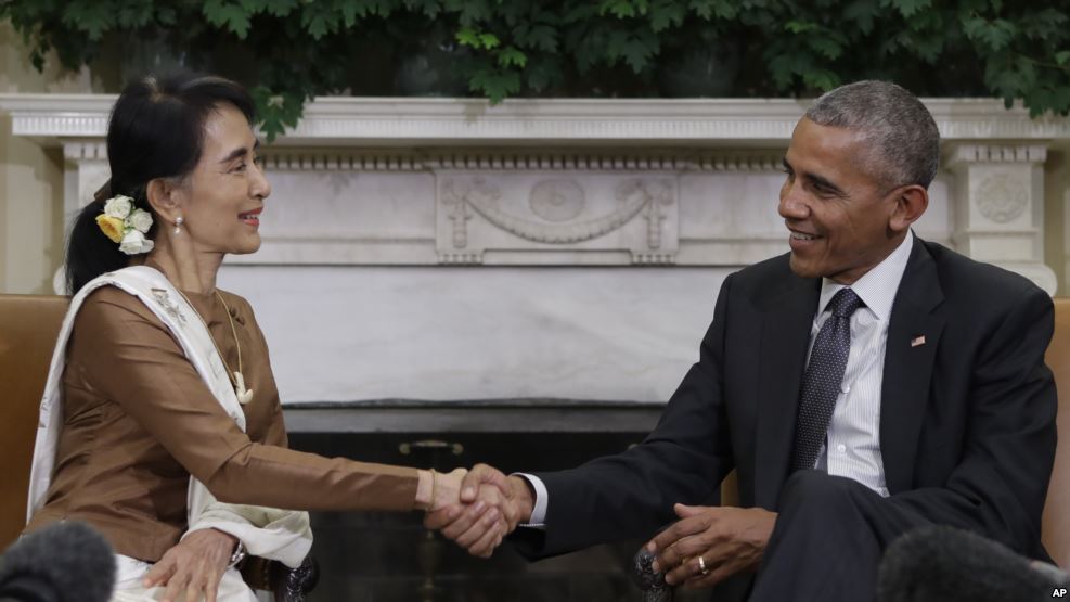 ဒါနဲ႔ ဆက္စပ္ျပီး ျမန္မာျပည္ကို ၾကည့္လိုက္ေတာ့ အိုဘားမားအထြက္ ေဒၚေအာင္ဆန္းစုၾကည္ အ၀င္ ျဖစ္ပါတယ္။ လူထုအမ်ားစု ေထာက္ခံမႈနဲ႔ လႊတ္ေတာ္နဲ႔ အစုိးရကို ဦးေဆာင္ဖြဲ႔စည္းႏိုင္ခဲ့သူ ႏိုင္ငံေတာ္၏ အတိုင္ပင္ခံပုဂၢိဳလ္ ေဒၚေအာင္ဆန္းစုၾကည္သည္လည္း အိုဘားမားၾကီးတုန္းကကဲ့သို႔ အာဏာဖီဆန္ ကန္႔ကြက္ ကန္႔သတ္ဖို႔ ၾကိဳးစားေနၾကတဲ့ အစြန္းေရာက္ေတြ အၾကမ္းဖက္ေတြ အဆိုးျမင္၀ါဒီေတြ အာဏာျပိဳင္ပါတီေတြ ကို ရင္ဆိုင္ ေျဖရွင္းေနရတယ္လို႔ ခံစားမိေၾကာင္းပါ။ ၂၀၀၈ ဖြဲ႔စည္းပုံအရ (လက္နက္ကိုင္) အာဏာကို ခ်ဳပ္ကိုင္ထားတဲ့ ၂၅% (အုပ္ခ်ဳပ္မႈ၊ ဥပေဒျပဳ) အာဏာကို သိမ္းပိုက္ထားတဲ့ တပ္မေတာ္ အင္အားစုေတြ၊ ေခတ္အဆက္ဆက္ ပန္းပန္ေနတဲ့ ခရိုနီေတြ လက္နက္ကိုင္ေတြ ရာဇ၀တ္ဂိုဏ္းစတားေတြလည္း ဥပေဒအေပၚမွာ အထိုင္က်ေနတုန္းပါပဲ။ ေဒၚေအာင္ဆန္းစုၾကည္ကိုယ္တိုင္ကေတာ့ လက္ရွိ ၅ ႏွစ္ကို အားနဲ႔ မာန္နဲ႔ ျဖတ္သန္းေနပါျပီ။