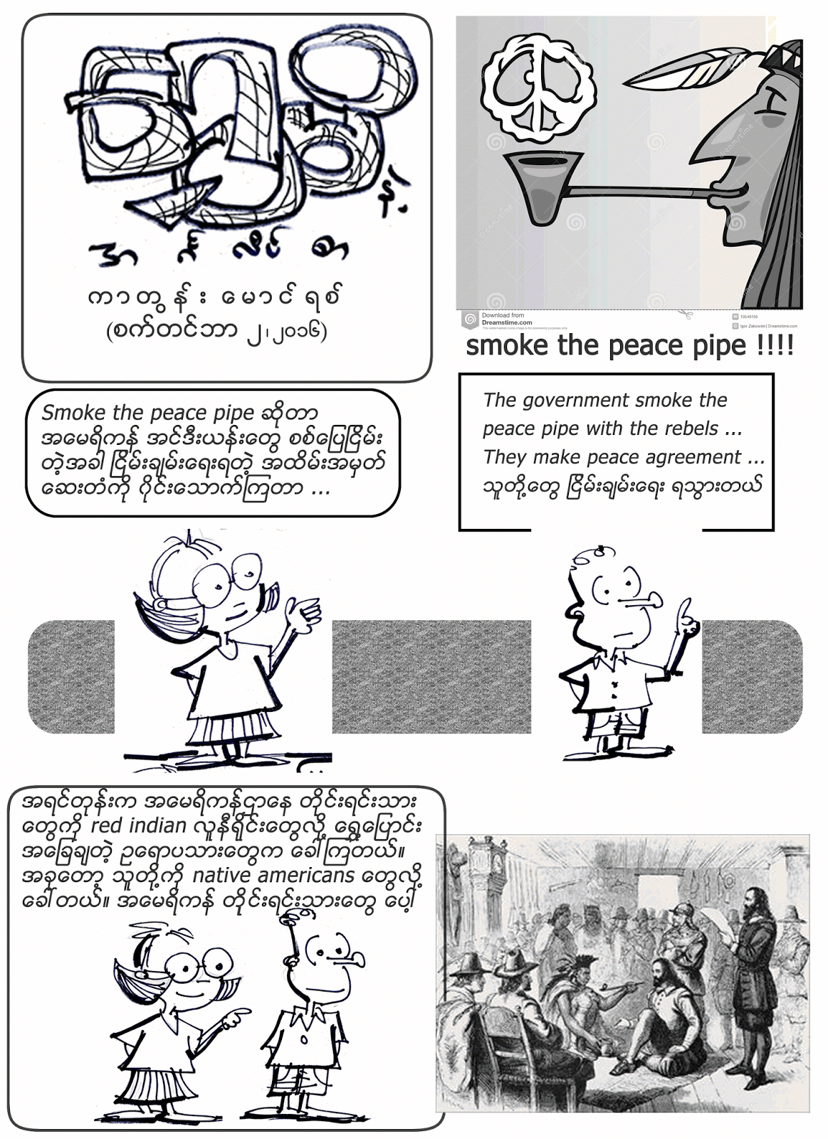 ကာတြန္း ေမာင္ရစ္ – ေရႊမိနဲ႔ အဂၤလိပ္စာ – smoke the peace pipe