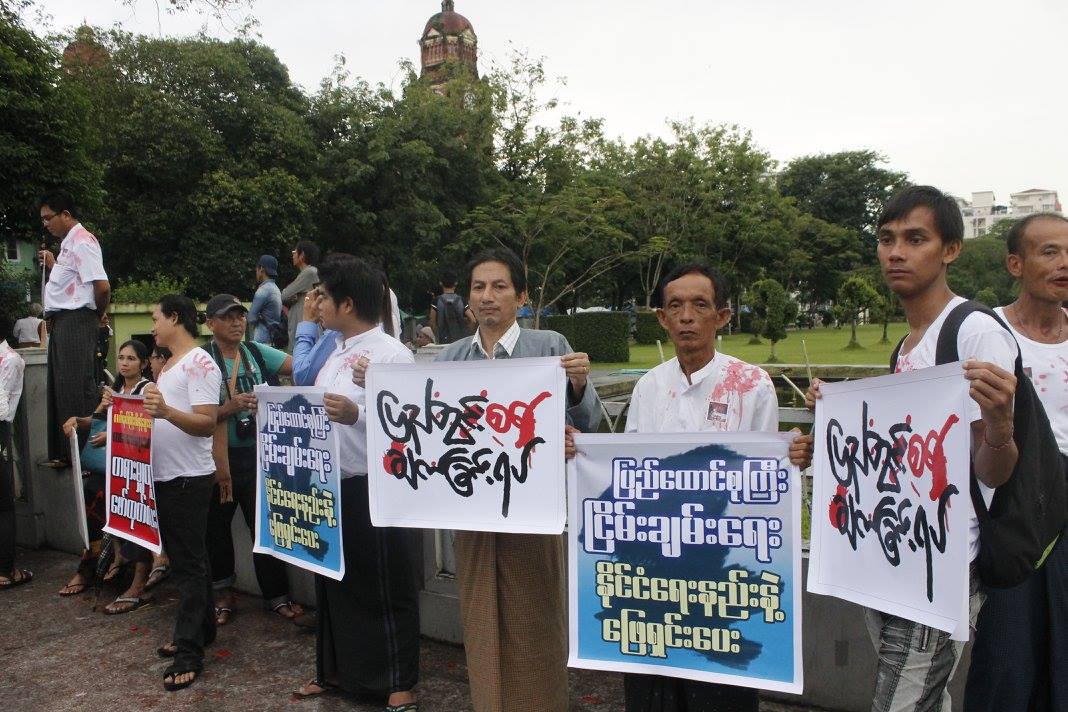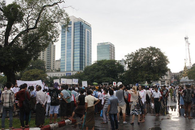 လက္နက္ၾကီးထိမွန္ေသဆံုးခဲ့ရေသာ အျပစ္မဲ ့ကေလးငယ္မ်ားအတြက္ တရားမွ်တမႈ ေဖာ္ထုတ္ေရးႏွင့္ ျပည္တြင္းစစ္ အျမန္ဆံုးရပ္တန္ ့ေရးဆႏၵျပပြဲအား ယေန ့(၈.၁၀.၂၀၁၆)ေန ့လည္ ၃း၀၀ နာရီမွစတင္ကာ ႏုိင္ငံေရးတက္ၾကြလွဳပ္ရွားသူ တုိင္းရင္းသားလူငယ္မ်ားမွ ဦးေဆာင္ျပီး ရန္ကုန္ျမိဳ ့ေတာ္ခန္းမေရွ ့(ဗႏၶဴလပန္းျခံေဘး)တြင္ က်င္းပခဲ့ပါသည္။