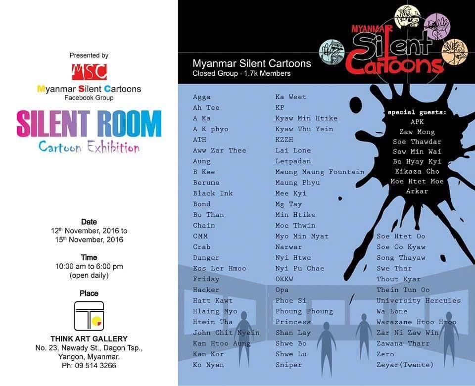 Think Art Cartoon Exhibition ႏိုု၀င္ဘာ ၁၂ မွ ၁၅ က်င္းပမည္၊ ဖိတ္စာ