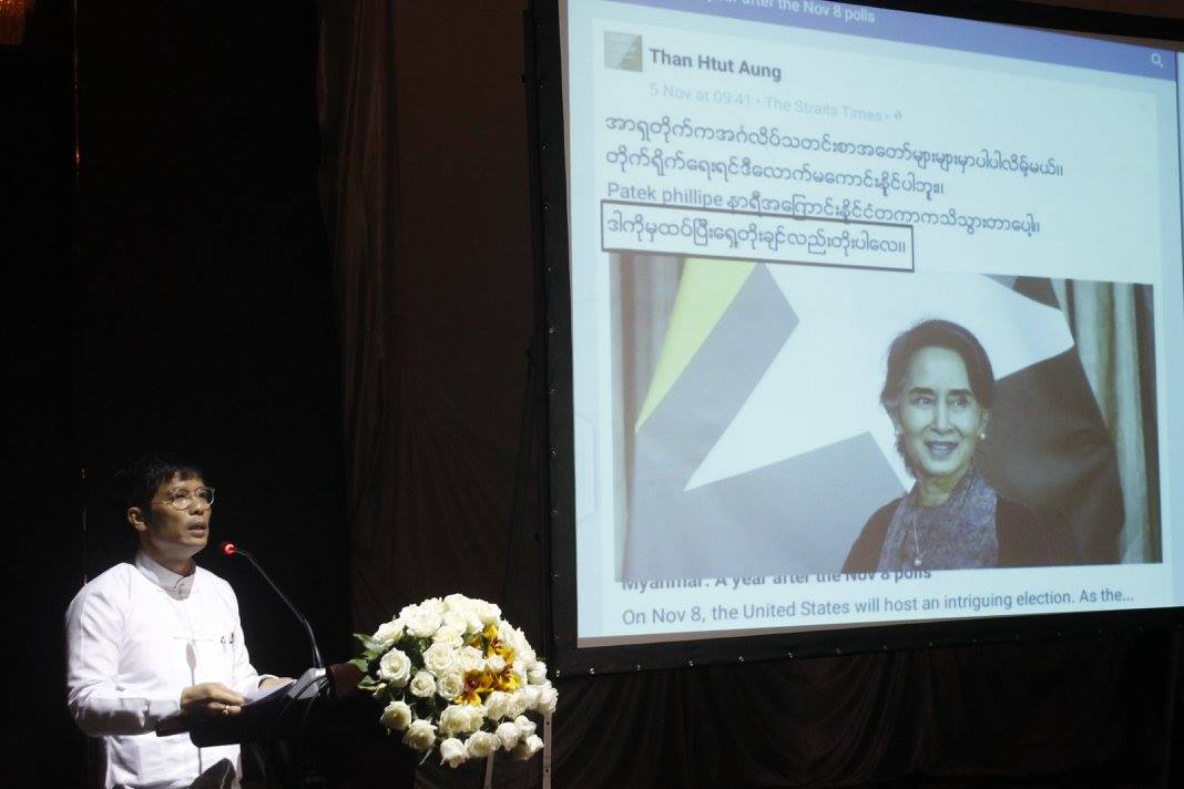 ၂၀၁၆ခုႏွစ္၊ ႏုိ၀င္ဘာလ(၆)ရက္ေန ့ Daily Eleven သတင္းစာပါ”၀န္ၾကီးခ်ဳပ္တစ္ဦး ေဒၚလာတသိန္းခန္ ့တန္ Patek Phillipe နာရီ၀တ္ဆင္သည္”ဟုေရးသားေဖာ္ျပခဲ့ျပီး ယင္းလက္ေဆာင္ႏွင့္ပတ္သက္သည့္ကိစၥအား စီးပြားေရးလုပ္ငန္းရွင္ ဦးေမာင္၀ိတ္သည္ သတင္းစာရွင္းလင္းပြဲတစ္ခုအား ယေန ့(၉.၁၁.၂၀၁၆)နံနက္(၁၀း၀၀)နာရီတြင္ Novotal Hotet Main Hall တြင္ က်င္းပခဲ့သည္။