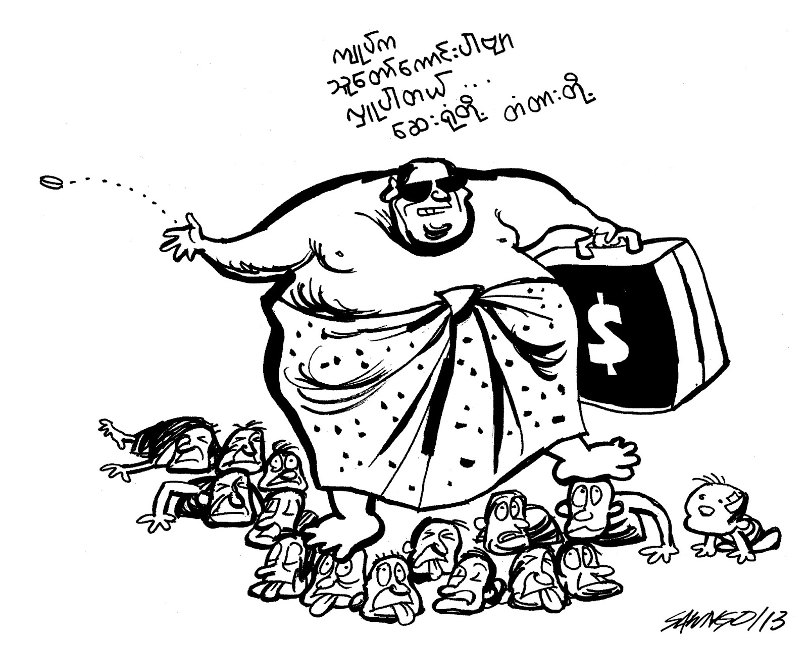 “ မင္းတိုု႔က ညံ့တာကိုုး။ အခုု သူက သမၼတၾကီး ျဖစ္သြားရင္ သူ႔အခြန္ဥပေဒေတြ ျပင္ဆင္ျပဌာန္းလိုုက္ရင္ မင္းတိုု႔ ထင္သလိုု အခြန္ေတြ ပိုုေဆာင္ရလိမ့္မယ္ ထင္လိုု႔လား။ မင္းတိုု႔ေတြက ငပိန္းေတြ ျဖစ္ကုုန္မွာေပါ့ကြ”