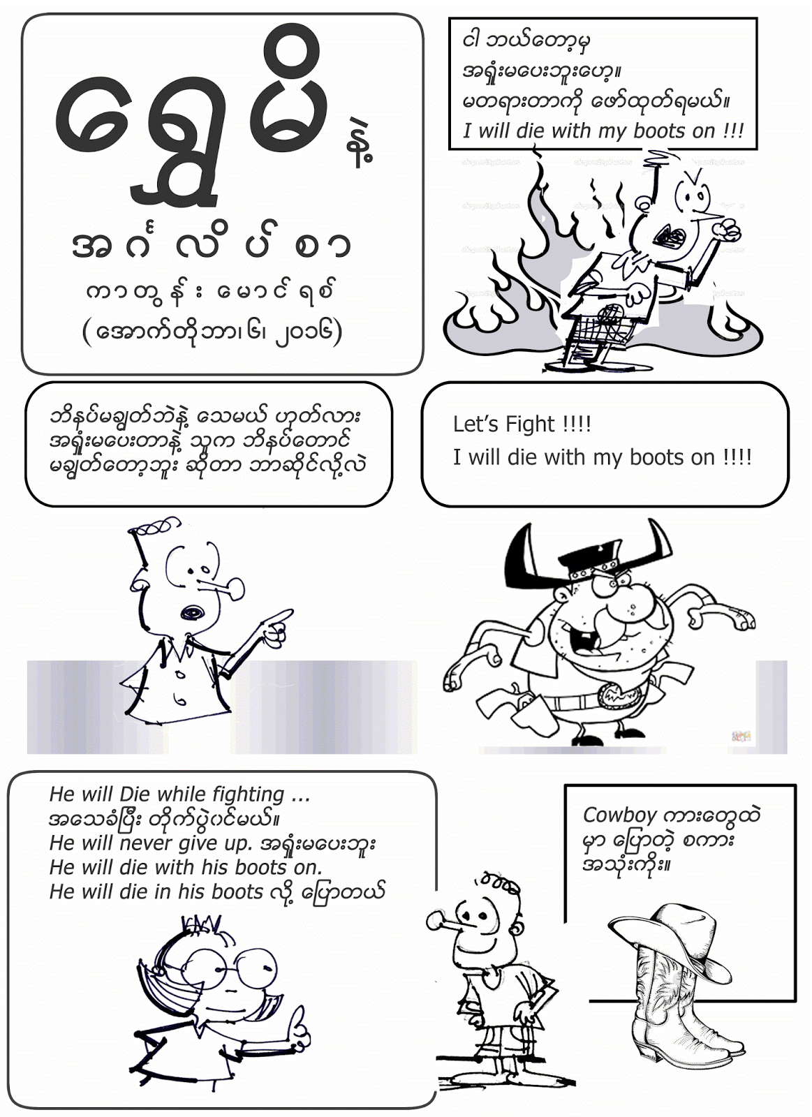 ကာတြန္း ေမာင္ရစ္ – ေရႊမိနဲ႔ အဂၤလိပ္စာ – Die with my boots on