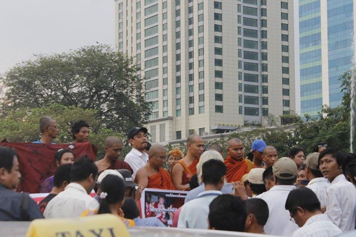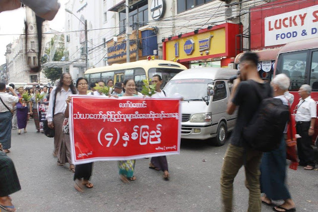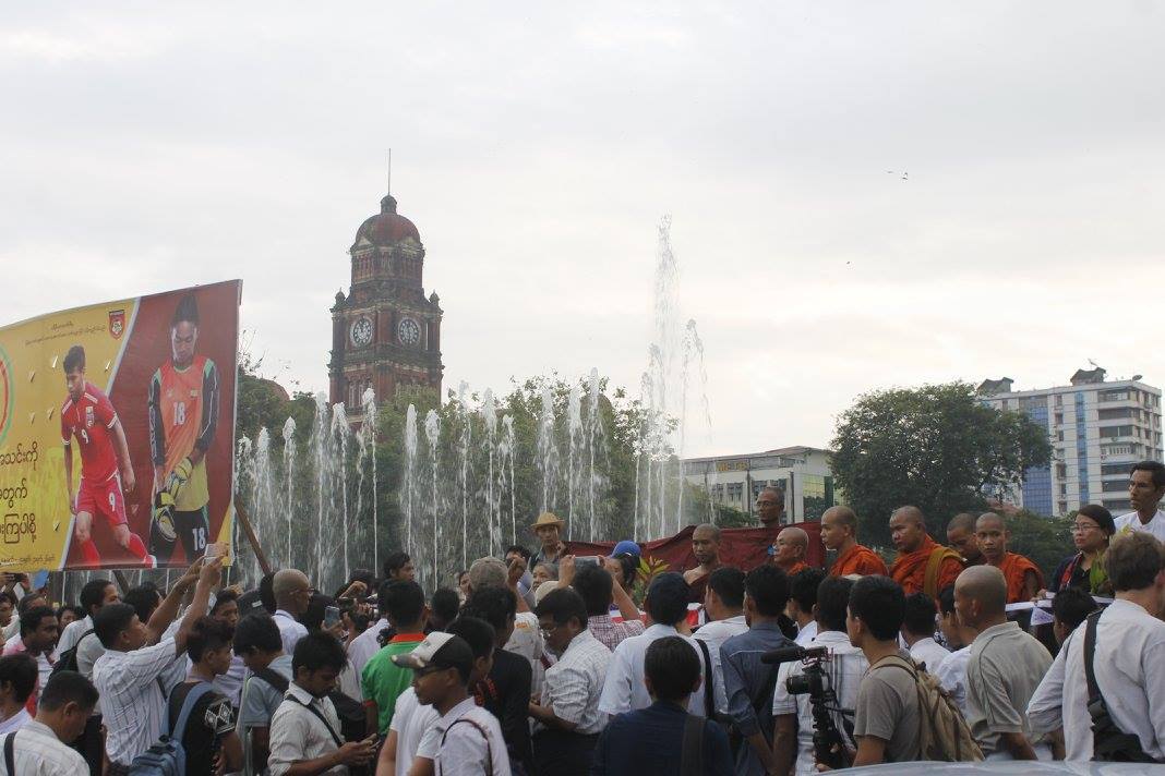 အခမ္းအနားအျပီးတြင္ အဆုိပါ လူအင္အား (၁၅၀) ခန္ ့သည္ မဟာဗႏၶဳလပန္းျခံအား လွည့္လည္ကာ ေၾကြးေၾကာ္သံမ်ားျဖင့္ ဆႏၵျပခဲ့ျပီး ဆူးေလဘုရားေပၚတြင္ ဆုေတာင္းပြဲျပဳလုပ္ခဲ့ၾကသည္။