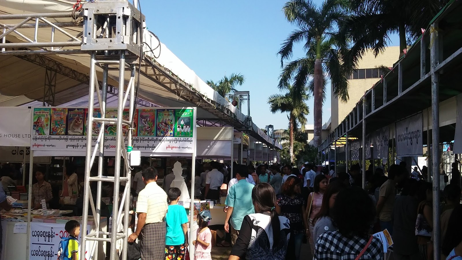ဖြင့္ပြဲအခမ္းအနားၿပီး၊ သမၼတႀကီးနဲ႔ ႏိုင္ငံေတာ္အႀကီးအကဲေတြ အမ်ဳိးသားဇာတ္ရံုေရွ ႔ကြင္းထဲမွာ ခင္းက်င္းေရာင္းခ်ေနတဲ့ စာအုပ္ဆိုင္မ်ားကို လွည့္လည္ၾကည့္ရႈ၊ စာအုပ္ဝယ္၊ စာအုပ္ေရာင္းသူ – ဝယ္သူမ်ားနဲ႔ တရင္းတႏီွး ႏႈတ္ဆက္စကားေျပာဆိုၾက။ စာေပပြဲေတာ္ကို လာေရာက္ၾကတဲ့ ရာေထာင္ခ်ီ လူေတြကလည္း – အမ်ဳိးသားဇာတ္ရံုႀကီးအတြင္း ေဟာေျပာေနတဲ့ ရသစာေပဆိုင္ရာ စာတမ္းဖတ္ပြဲေတြကို ဝင္ေရာက္နားေထာင္ေနသူမ်ား၊ ဇာတ္ရံုအဝင္ခန္းမက်ယ္ႀကီးတြင္းရွိ စာေပေကာ္မတီမွ ေရြးခ်ယ္ျပသထားေသာ ရသစာေပ စာအုပ္ (၁၀၀) နဲ႔ စာေရးဆရာမ်ား ႏွင့္ စာအုပ္ဓါတ္ပံုမ်ားကို မွတ္သားၾကည့္ရႈေနသူမ်ား၊ အျပင္ဘက္ရွိ စာအုပ္ဆိုင္ တရာေက်ာ္မွာ ေရာင္းခ်ေနတဲ့ ဂႏၳဝင္စာအုပ္အေဟာင္းမ်ား၊ ရွားပါးစာအုပ္မ်ား အပါအဝင္ ေခတ္ေပၚေခတ္ေဟာင္း ေထာင္ေသာင္းခ်ီ စာအုပ္စာတမ္းမ်ားကို တဆိုင္ဝင္တဆိုင္ထြက္ ရွာေဖြဝယ္ယူေနၾကသူမ်ား၊ ကယ္ရီေကးခ်ား (Caricature) ကာတြန္းပံုတူ ေရးဆြဲေနၾကတဲ့ ကာတြန္းဆရာမ်ားနဲ႔ ခင္းက်င္းျပသထားတဲ့ ကာတြန္းမ်ားကို ေငးေမာၾကည့္ေနသူမ်ား၊ ရြက္ဖ်င္တဲငယ္ေအာက္ေတြမွာ ေဟာေျပာရြတ္ဆိုေနတဲ့ ရသစာဖတ္ဝိုင္း၊ ေရးသူဖတ္သူ ေဆြးေႏြးပြဲမ်ား၊ စာအုပ္မိတ္ဆက္ပြဲမ်ားကို နားေထာင္သူမ်ားနဲ႔ ၿခိမ့္ၿခိမ့္သဲ စည္းစည္းကားကား က်င္းပေနတဲ့ျမင္ကြင္းက ၾကည္ႏူးစရာ။