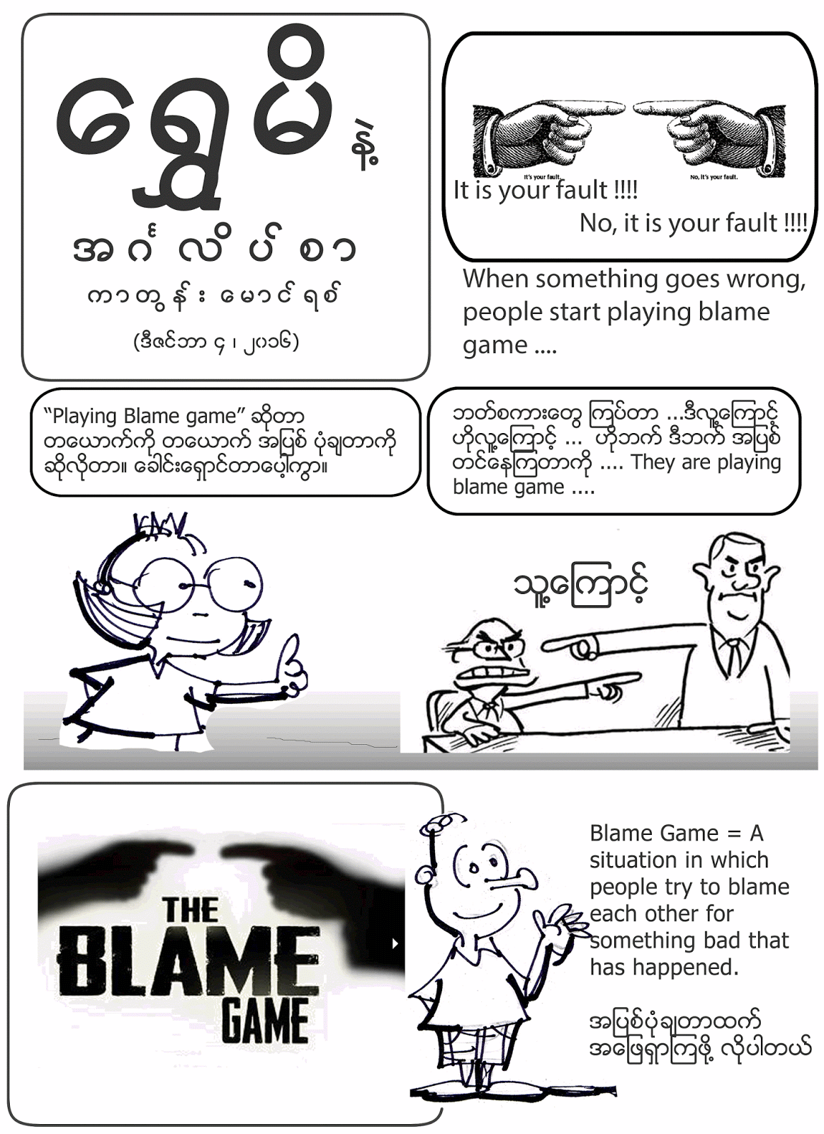 ကာတြန္း ေမာင္ရစ္ – ေရႊမိနဲ႔ အဂၤလိပ္စာ – Blame Game