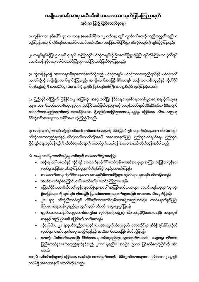 ေဆြးေႏြးပြဲအၿပီးမွာ သတင္းစာရွင္းလင္းပြဲကို ဆက္လက္ျပဳလုပ္ခဲ့ပါတယ္။ ေဆြးေႏြးပြဲကုိ ႏိုင္ငံေရးပါတီေခါင္းေဆာင္မ်ား၊ ႏိုင္ငံေရးအင္အားစုမ်ား၊