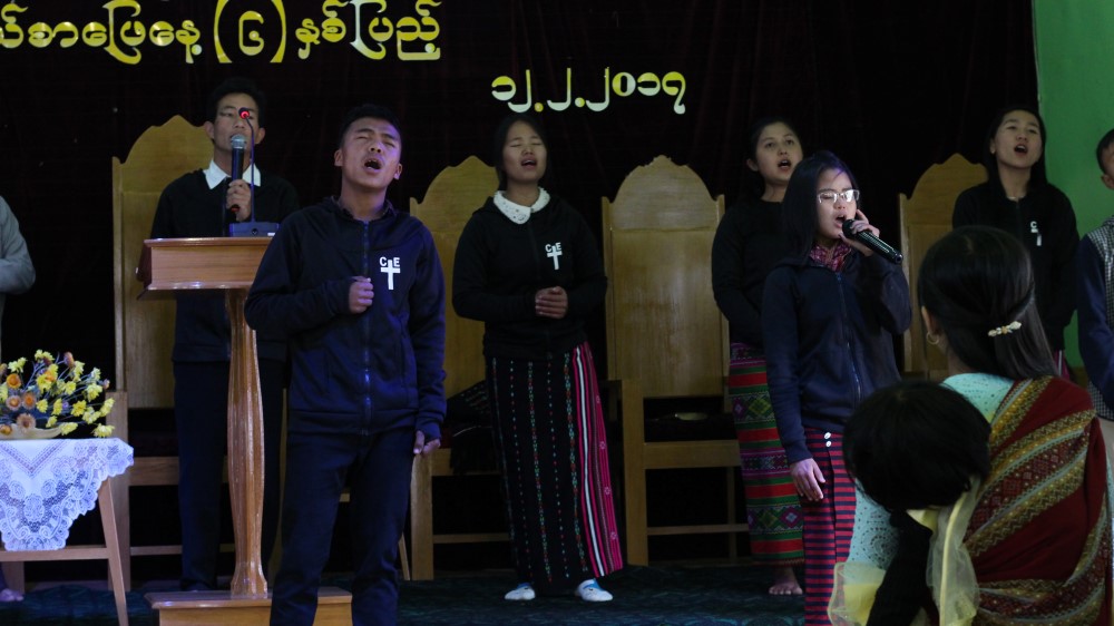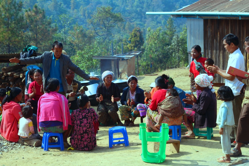 ee – သီဖူးလ္ေက်းရြာ ေဒသခံတို႔၏ ဆုေတာင္းပြဲတြင္ ခ်င္းရိုးရာ သီခ်င္းမ်ား သီဆို ကခုန္ေနၾကသည္။ သက္ႀကီးအမ်ဳိးသားတစ္ဦးက ခ်င္းဘာသာျဖင့္ ေရးစပ္ထားသည့္ သီခ်င္းကို ဦးေဆာင္ သီဆိုကခုန္ၿပီး သီခ်င္းဆိုရာတြင္္ပါဝင္ေနသူမ်ားကို ဆုေတာင္းေပးေနသည္။