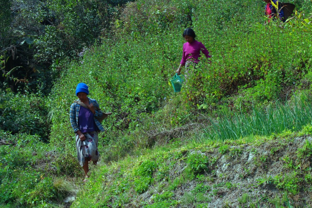 cc – သီဖူးလ္ေက်းရြာမွ တစ္နာရီၾကာ ေျခလ်င္သြားရသည့္ ခရီးႏွင္ၿပီး ေလွကားထစ္ေတာင္ယာ စိုက္ခင္းသို႔ ေရာက္ရွိလာေသာ အမ်ိဳးသမီးမ်ား။
