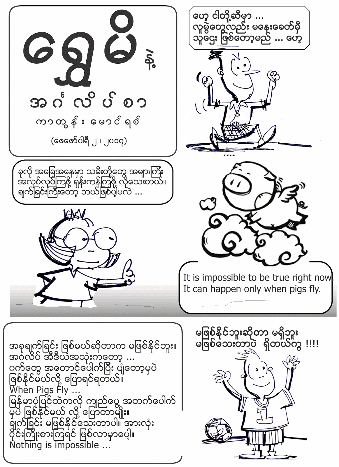 ကာတြန္း ေမာင္ရစ္ – ေရႊမိနဲ႔ အဂၤလိပ္စာ – When pig flies