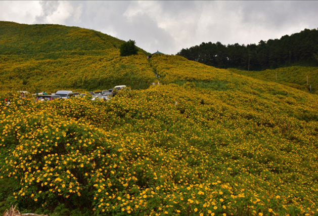 ရည္ရြယ္ရာ ဦးတည္ သြားေနဆဲမွာ လမ္းေဘးႏွစ္ဘက္ ျမင္ေတြ႔ရတဲ့ တိမ္ျဖဴျဖဴ ေကာင္းကင္ျပာျပာေတြရဲ႕ေအာက္ သစ္ ေတာ သစ္ပင္စိမ္းစိမ္း စိုက္ခင္းပ်ိဳးခင္း စိမ္းစိမ္းေတြကိုလည္း အဝါေရာင္ေတြကသာ လႊမ္းမိုးလို႔ေနပါတယ္။ အဝါေရာင္ ေနၾကာရိုင္းခင္း Thung Bua Tong ကို မေရာက္ခင္မွာတင္ တေတာလံုး တေတာင္လံုးလိုလို ထိန္ထိန္ဝါေနသလိုပါ။