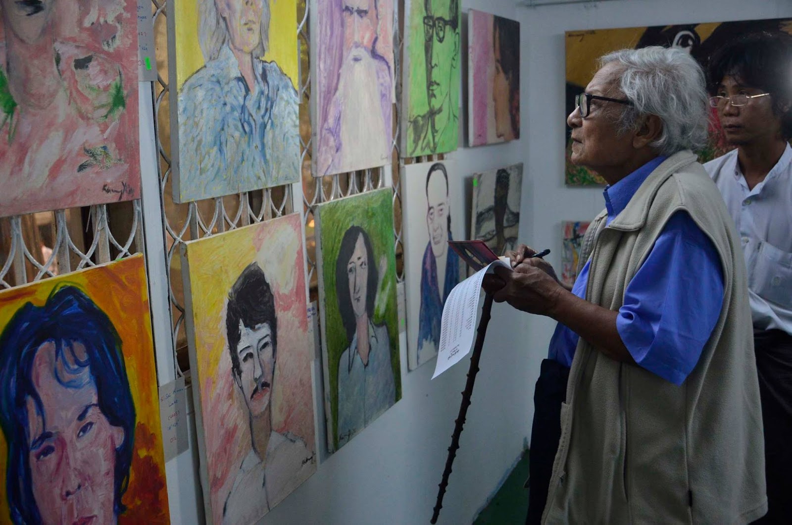 “ခင္ေမာင္ရင္တုိ႔၊ ေပၚဦးသက္တုိ႔ ၀င္းေဖတုိ႔ကုိ ကၽြန္ေတာ္ သိခဲ့ တာ ႏွစ္ေပါင္းၾကာလွၿပီ။ ခန္႔မွန္းဖုိ႔ေတာင္ မတတ္ႏုိင္ေအာင္ပဲ။ ခင္ေမာင္ရင္ လက္ရာမ်ားစြာကုိ ျမင္ေတြ႕ခံစားခဲ့ရတာလည္း မနည္းမေနာပါပဲ။ ဒီျပပြဲမွာ ႀကိဳက္တဲ့လက္ရာေတြကေတာ့ လူပုံတူေတြပါပဲ။ ခင္ေမာင္ရင္ရဲ႕ ခင္ေမာင္ရင္ပုံတူေတြအပါအ၀င္ေပါ့။ ပုံတူအမ်ားစု (အားလုံးလုိလုိ)က ကုိယ္သိတဲ့လူေတြဆုိေတာ့ ပုံတူရွင္ေတြရဲ႕ ပုံတူပုံရိပ္ေတြဟာ အႏု ပညာရွင္ရဲ႕ အႏုပညာအဖုံးအကြယ္ အပိတ္အဆုိ႔ ေအာက္မွာ အယုိင္အရြဲ႕၊ အေကြ႕အလိန္ေတြေအာက္မွာ ေပ်ာက္ကြယ္မသြားတဲ့အျပင္ ပုိလုိ႔ေတာင္ ပီျပင္ၾကည္လင္ၿပီး လွပလာပါေတာ့တယ္။ ေရွးျမန္မာမိန္းမသားေတြရဲ႕ အႏြဲ႕ဟန္ကုိ ပန္းခ်ီဆရာရဲ႕ အရြဲ႕ဥာဏ္ နဲ႔ ေပါင္းစပ္ ေရးဖြဲ႕ခ်က္ေတြ ကုိ ျမင္ရေတာ့ လြန္ခဲ့တဲ့ ႏွစ္သုံးဆယ္ေလာက္က ဒီလုိပုံေတြ ခင္ေမာင္ရင္ ေရးဆြဲခဲ့တာ အမွတ္ရတယ္။”