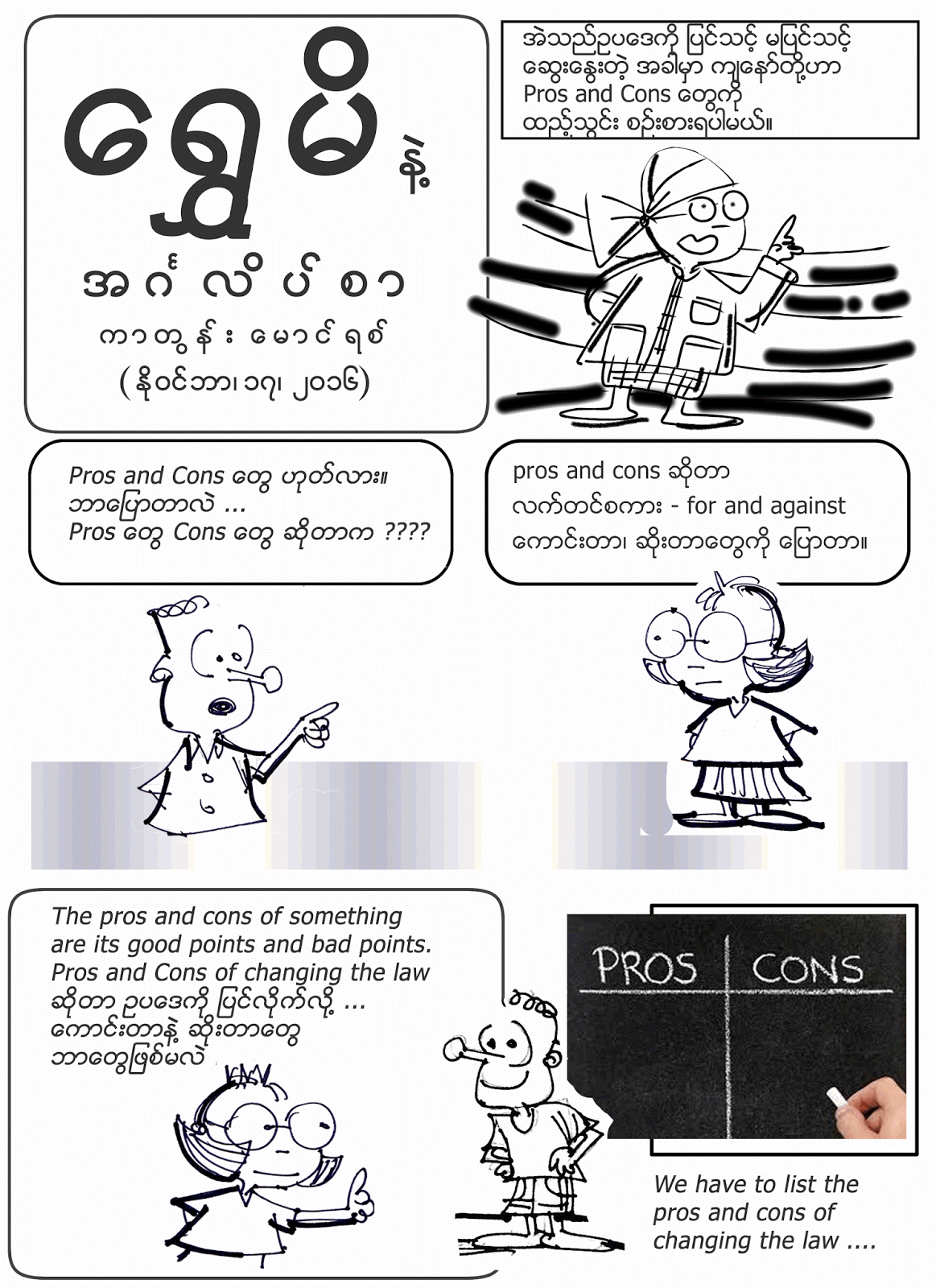 ကာတြန္း ေမာင္ရစ္ – ေရႊမိနဲ႔ အဂၤလိပ္စာ – Pros and Cons