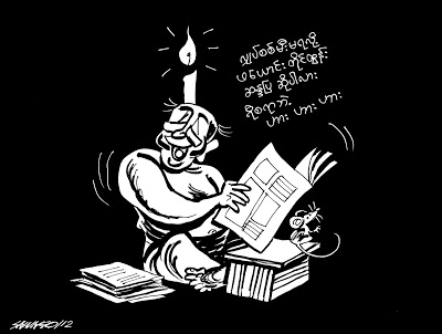 တဝုန္းဝုန္း၊ တဒိုင္းဒိုင္း ရြာသြန္ေနေသာ မိုးနဲ႔အတူ လွ်ပ္စီးမိုးၿခိမ္သံ တဂ်ိမ္းဂ်ိမ္းေၾကာင့္ အသည္းငယ္ေသာ ကၽြန္ပ္မွာ မုိးေလနဲ႔အတူ ေပ်ာက္ကြယ္သြားတတ္တဲ့ လွ်ပ္စစ္မီးမဲ့ အေမွာင္ကမာၻထဲမွာ ရင္တလွပ္လွပ္နဲ႔ မအိပ္ႏိုင္။ ဒါနဲ႔ စကားစပ္ ေျပာရရင္ သဘာဝဓါတ္ေငြ႔၊ ေရနံစြမ္းအင္ ျပည့္လွ်ံေနတဲ့ ဒီေရႊျပည္ႀကီးမွာ လူျဖစ္ရတဲ့ အလြန္ကံေကာင္းေသာ ေရႊျပည္သားေတြအဖို႔ မရွိမျဖစ္ထားရွိရမည့္အရာမွာ ေမတၱာတရား* မဟုတ္ဘဲ မီးျခစ္ နဲ႔ ဖေယာင္းတိုင္ ျဖစ္ေလသည္။ ဝန္ႀကီးခ်ဳပ္ႀကီးေတာင္ အဲ့ဂါေတြ မေဆာင္ထားလို႔ ႏိုင္ဂံဂ်ားဧည့္သည္မ်ားေရွ ႔မွာ အေမွာင္ထဲ မ်က္ႏွာပ်က္ခဲ့ရတယ္ မဟုတ္လား။ (*ေရႊျပည္ႀကီးမွာ မွန္မွန္ကန္ကန္ ေမတၱာပြားတတ္ဖို႔ကိုေတာ့ “လေကာင္ႀကီး” လို႔ ေအာ္ေနေသာ အဖြဲ႔က တာဝန္ယူ သင္ၾကားပို႔ခ်ေနလား မသိ။)