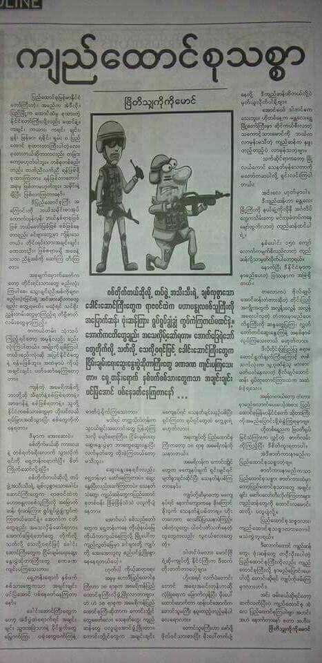 မိမိေရးသားခဲ့တဲ့ သေရာ္စာသည္ တိုင္းျပည္အတြင္းျဖစ္ပ်က္ေနတဲ့ ျပည္တြင္းစစ္ကိုအေျချပဳၿပီး ဘယ္လက္နက္ကိုင္အဖြဲ႕ ဆိုတဲ့နာမည္တခုမွေခါင္းစဥ္မတပ္ခဲ့ေသာ္လည္း တပ္မေတာ္က တရားစြဲဆိုလိုက္တာနဲ႔ပက္သက္ၿပီး ဖမ္းမယ္ဆိုလည္း နာခံ ကာ ဥပေဒေဘာင္အတြင္းကေန ရင္ဆိုင္သြားမယ္လုိ႔ သေရာ္စာေရးသူ ၿဗိတိသွ်ကိုကိုေမာင္ကလည္း ဗဟန္းရဲစခန္းအတြင္းရွိေနစဥ္ ေျပာပါတယ္။
