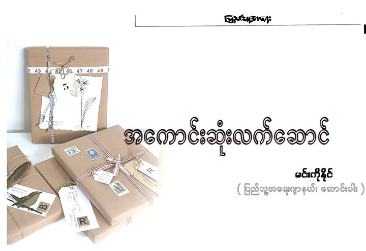 က်ေနာ္လည္း မိတ္ေဆြေတြႏွင့္ ကေလးမ်ားအတြက္ လက္ေဆာင္ေကာင္းေပးခ်င္စိတ္ အျမဲရွိသည့္ အေလ်ာက္စဥ္းစား ထားတာ ရွိပါသည္။ အျခားမဟုတ္ပါ။ က်ေနာ္ေန႔စဥ္ျမင္သမွ်၊ ၾကားသမွ် ေကာင္းႏိုးရာ ျပန္ေျပာျပသည့္စာမ်ား ေရးကာစု၊ ျပီးေတာ့ စာအုပ္ကေလး ဘာေလးထုတ္ျခင္းျဖင့္ လက္ေဆာင္ေပးခ်င္ျခင္းမ်ိဳးပဲ ျဖစ္ပါသည္။ က်ေနာ့္ အေတြ႔အၾကံဳအရ စာအုပ္ေကာင္းမ်ားမွာ “အေကာင္းဆံုးလက္ေဆာင္” ျဖစ္ေနတတ္သည္မို႔ စာအုပ္ေကာင္းမ်ားရလွ်င္ ကြၽန္ေတာ္လည္း လို ခ်င္ပါသည္။ သည္ထက္ေကာင္းသည့္ လက္ေဆာင္ရွိလွ်င္လည္း က်ေနာ့္ကို လက္တို႔လိုက္ပါဦး။
