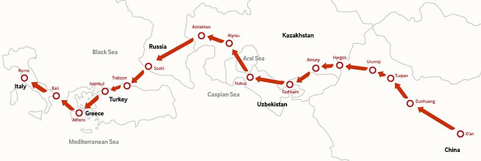 ဥပမာ။ ။ ရုရွားက၂၀၀၇ ခုႏွစ္ထဲကစျပီး စီမံလုပ္ေဆာင္ေနတဲ့ (ယခင္ဆိုဗီယက္ယူနီယံက ကြဲထြက္ ႏိုင္ငံမ်ားကို စုစည္းျပီး) ယူေရရွားစီးပြားေရးယူနီယံနဲ႔ ပိုးလမ္းမစီမံကိန္းကို ဆက္စပ္လိုက္ႏိုင္မႈ။