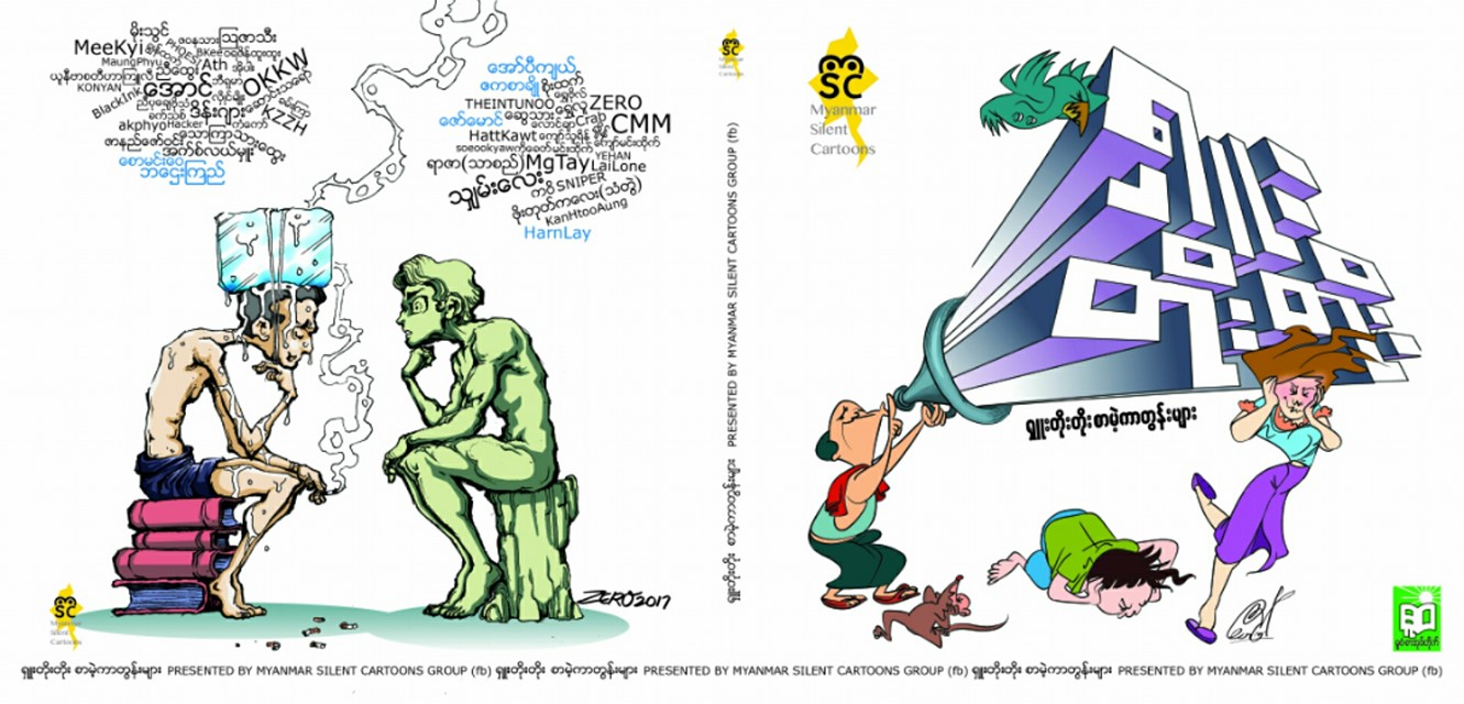 ‘ နယ္လွည့္ပါး႐ိုက္ ‘ ဆိုတုန္းကလည္း ‘ နယ္လွည့္ပါး႐ိုက္ ‘ ကာတြန္းေတြ အင္နဲ႔အားနဲ႔ထြက္လာသလို ‘ ထမင္းတစ္နပ္ေလွ်ာ့ စား ‘ ဆိုတုန္းကလည္း ‘ ထမင္းတစ္နပ္ေလွ်ာ့စား ‘ ကာတြန္းေတြ ဒုနဲ႔ေဒး ထြက္လာတာပဲ။’ ေစာက္႐ူး ‘ ဆိုတုန္းက ‘ ေစာက္႐ူး ‘ ကာတြန္းေတြ မိႈလိုေပါက္သလို ‘ ဂ်က္ပါ၀ါ ‘ က်ျပန္ေတာ့လည္း ‘ ဂ်က္ပါ၀ါ ‘ လိုက္ၾကျပန္တာပဲ။ ‘ ဘူဒိုဇာ ‘ နဲ႔ တဲအိမ္ေတြ ဖ်က္ေတာ့လည္း ‘ ဘူဒိုဇာ ‘ ကာတြန္းေတြထြက္လာသလို ‘ ဦးထုပ္၀ါ ‘ ေတြနဲ႔ အိမ္ေတြဖ်က္ျပန္ေတာ့လည္း ‘ ဦးထုပ္၀ါ ‘ ကာတြန္းေတြ ေပၚလာျပန္တာပဲ။ ဒါေခတ္ပဲ။