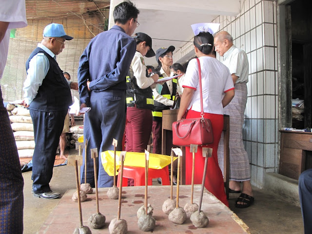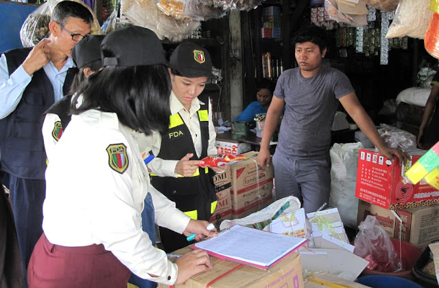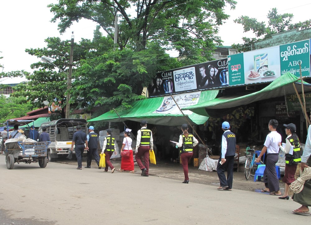 ျမန္မာႏိုင္ငံအစားအေသာက္ႏွင့္ ေဆးဝါးကြပ္ကဲေရးဦးစီးဌာန(FDA) က စစ္ေဆးေရးအဖဲြ႔ငယ္ ၆ ဖဲြ႔ျဖင့္ ကုန္စည္ဒိုင္အတြင္း သြားေရာက္ၿပီး လက္ဖက္စို၊ လက္ဖက္ေျခာက္၊ ဆီ၊ ငါးပိမ်ဳိးစံု၊ င႐ုတ္သီးမႈန္႔၊ ပဲမ်ဳိးစံု၊ င႐ုပ္ဆီ၊ ငါးေျခာက္၊ ပုဇြန္ေျခာက္ အစ႐ွိသည့္ စားေသာက္ကုန္မ်ားကို စစ္ေဆးရန္ နမူနာ ဝယ္ယူျခင္း၊ တခ်ဳိ႕ကို ေရြ႕လ်ားဓာတ္ခဲြယာဥ္အတြင္း ခ်က္ခ်င္း စစ္ေဆးျခင္းတို႔ကို ျပဳလုပ္ခဲ့သည္။
