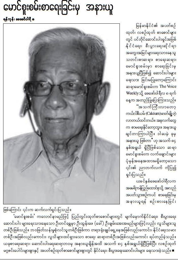 ကြၽန္ေတာ္တုိ႔ရြာက အလြန္ေတာက်တဲ့ ရြာကေလးပါ။ ၿမိဳ႕တက္ေက်ာင္းေနဖူးတာက ကြၽန္ေတာ့္အေဖညီအစ္ကိုတစ္ ေတြပဲရွိပါတယ္။ ေျမတုိင္းစင္စပတ္ေတာ္၊ ေက်ာင္းဆရာ၊ ရြာသူႀကီး။ ေက်ာင္းဆရာဆုိတာ စာနဲ႔အသက္ေမြးသူမဟုတ္ လား။ သူတုိ႔က စာဖတ္ၾကတယ္။ ၿမိဳ႕ကသတင္းစာ၊ ဂ်ာနယ္၊ မဂၢဇင္းေတြမွာယူဖတ္႐ႈၾကပါတယ္။ ျမန္မာ့အလင္း၊ ရန္ကုန္၊ ဗမာ့ေခတ္၊ လူထု။ ႐ႈမဝ၊ ေသြးေသာက္။ လူထုဂ်ာနယ္မွာ ေမာင္စူးစမ္းဆုိတဲ့အမည္ကို မွတ္မွတ္ရရျဖစ္ေနပါတယ္။ လူထုဂ်ာနယ္မွာ ေမာင္စူးစမ္းေရးတဲ့အပတ္စဥ္ေဆာင္းပါးအမည္က ”ဗမာ့စီးပြားေရးစစ္တမ္း”။ စစ္တမ္းဆုိတဲ့ ေဝါဟာရ အဓိပၸာယ္ကို ဝိုးတဝါးပဲသိခဲ့မိတယ္ထင္ပါတယ္။ ေနာက္ေတာ့ မဂၢဇင္းအရြယ္နဲ႔ေဆာင္းပါးေပါင္းခ်ဳပ္ထုတ္ခဲ့တယ္ထင္ပါ တယ္။ ဘာစာေတြမွန္းမသိလုိ႔ မဖတ္ခဲ့ပါ။ အဖုံးမွာပါတဲ့ ”ေမာင္စူးစမ္း” ”စစ္တမ္း”ပဲျမင္ေနက်ျဖစ္ၿပီး မွတ္မိေနပါတယ္။ မူလတန္းေက်ာင္းဘဝကပါ။ ကြၽန္ေတာ့္ဦးေလးေတြကေတာ့ ကြန္ျမဴနစ္ေတြမုိ႔ထင္ပါရဲ႕ အဲဒီစာအုပ္ကိုဖတ္ၾကပါတယ္။