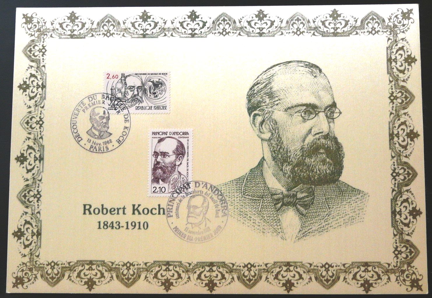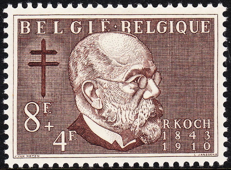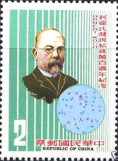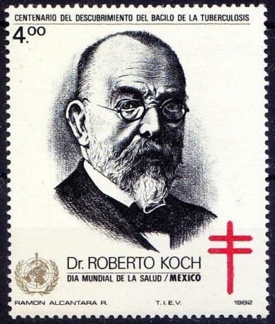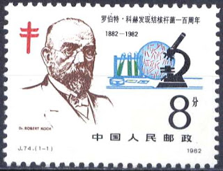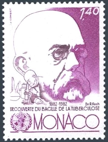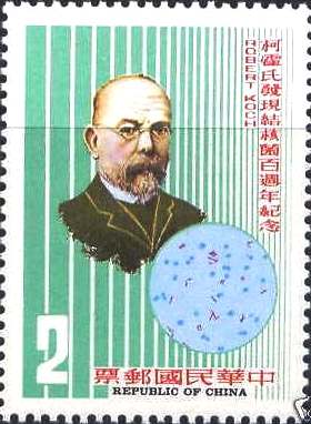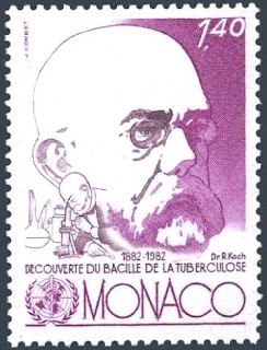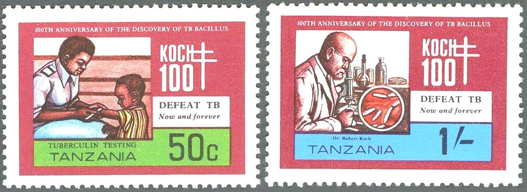 (တီဘီပုိးေတြ႔ရွိျခင္း ႏွစ္ ၁၀၀ ျပည့္ အထိမ္းအမွတ္အျဖစ္ ၁၉၈၂ ခုႏွစ္တြင္ ႏိုင္ငံတကာက ထုတ္ေ၀ေသာ တံဆိပ္ေခါင္းမ်ား)