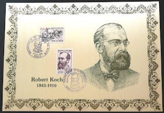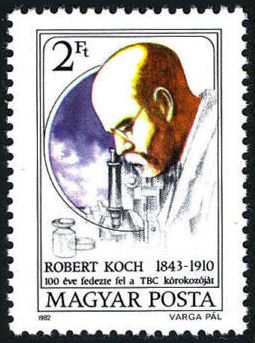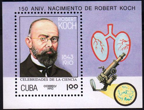 (Dr Rober Koch (1843 – 1910) အတြက္ ႏွစ္ပတ္လည္ေန႔မ်ားတြင္ ဂုဏ္ျပဳထုတ္ေ၀ေသာ တံဆိပ္ေခါင္းမ်ား)