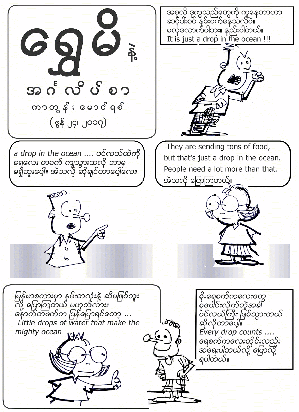 ကာတြန္း ေမာင္ရစ္ – ေရႊမိနဲ႔ အဂၤလိပ္စာ – a drop