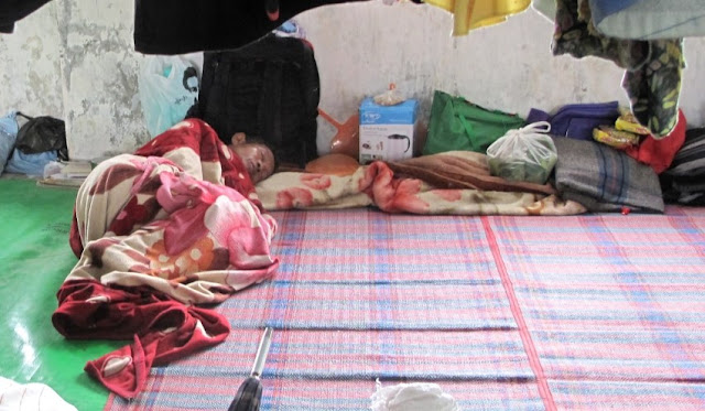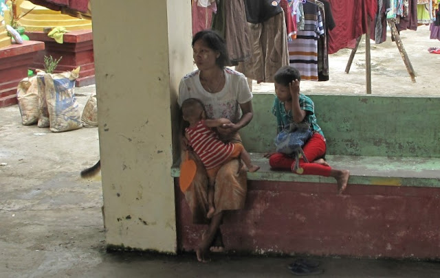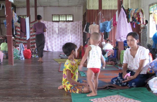 စစ္ေတြၿမိဳ႕ မဟာေဇယ်သိဒၶိအဓိ႒ာန္ေက်ာင္းတိုက္ေရာက္ ဒုကၡသည္မ်ားထဲတြင္ အသက္ တစ္လခဲြအရြယ္ ကေလးလည္း ပါဝင္သည္